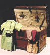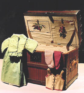 19th c. doll's trunk with compartments filled with antique
